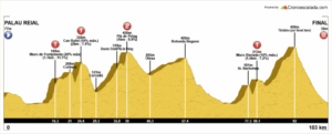 ANADA: per Molins de Rei (RG), Pallejà, 1 Muro: Fontpineda (1,15 km. 12% media, 20% máx. sigue hasta 2,57 km. al 7%) (RG), Corbera (RG), 2 Muro: Can Rafel (2,07 km., 9’7% media, 16% máx.) (RG), Cervelló, Vallirana, 3 Muro suavizado: Pla de Pèlag (RG), Olesa.